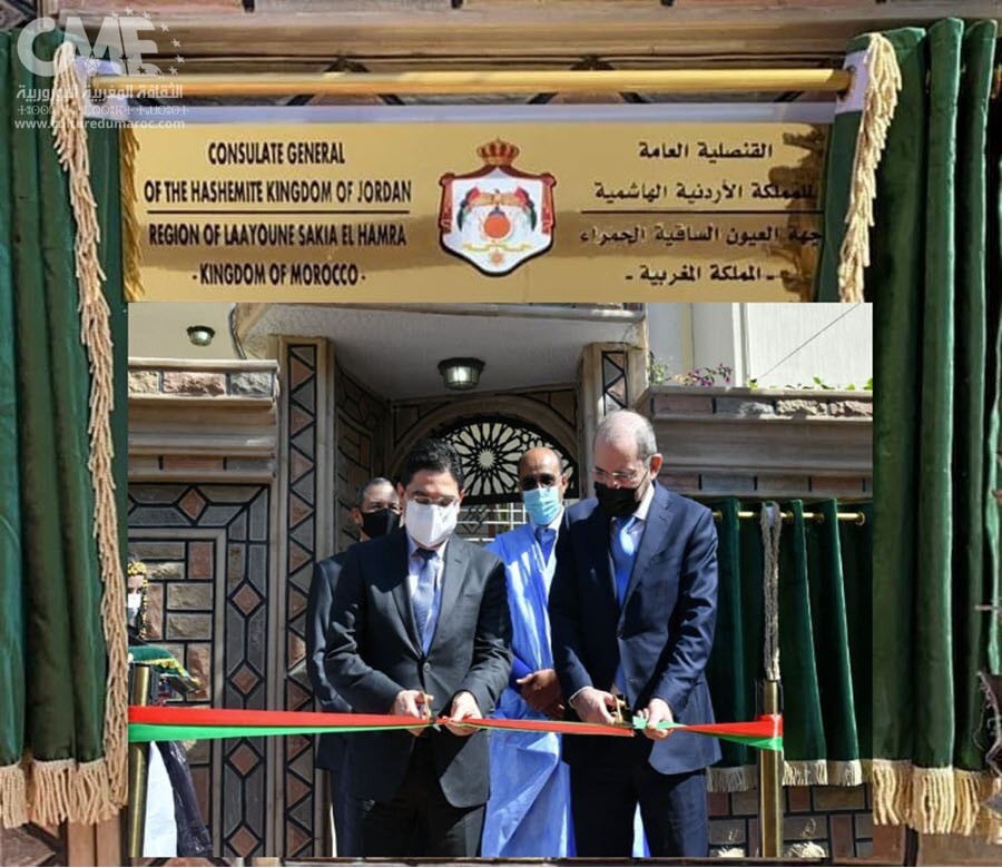 افتتح الأردن الخميس 04 مارس 2021 ، بالعيون ، قنصلية عامة له بجهة العيون الساقية الحمراء، بحضور السيدان ناصر بوريطة وزير الخارجية والتعاون الإفريقي والمغاربة المقيمين بالخارج، وأيمن الصفدي نائب رئيس الوزراء وزير الخارجية وشؤون المغتربين الأردني.