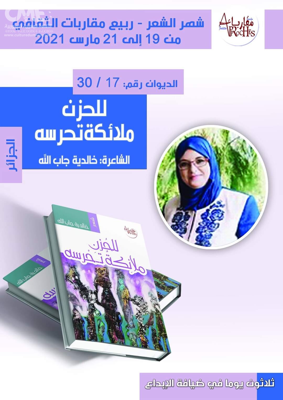 الديوان السابع عشر من دواوين شهر الشعر الثلاثين. للشاعرة الجزائرية خالدية جاب الله بعنوان:” للحزن ملائكة تحرسه”