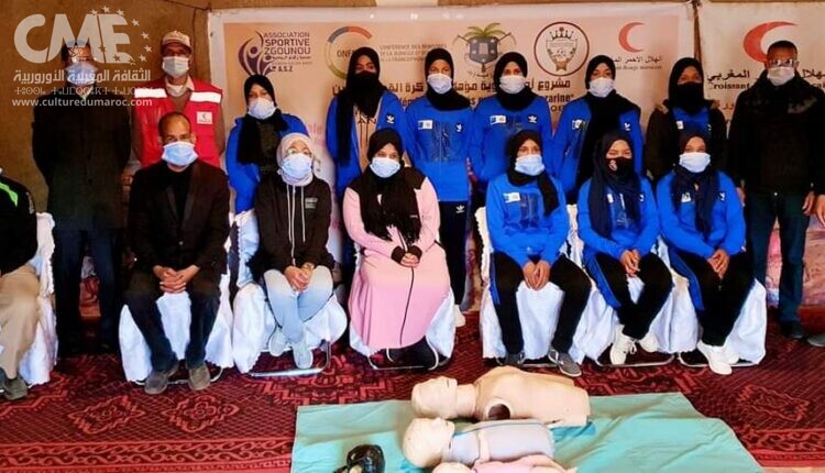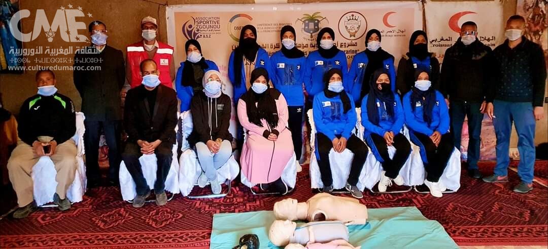 نظمت جمعية زكونو الرياضية بشراكة مع المكتب الإقليمي للهلال الأحمر المغربي بزاكورة، يوم الخميس 18 مارس 2021، بالمؤسسة الفندقية مخيم سردرار بأيت بوداود، الدورة التكوينية الأولى في مجال الإسعافات الأولية، تحت شعار “التكوين رافعة أساسية للنهوض بكرة القدم النسوية بتازارين”، و ذلك لفائدة 11 شابة من تازارين إقليم زاكورة.