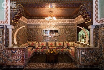 الصالون المغربي يكلف أكثر من نظيره الأوروبي كثيرا، حيث يتميز بزخارف فنية تقليدية سواء من أنواع الخشب الباهظة أو الجبس، مع طلاء يعرف باسم ”تدلاكت” وهو الأكثر شيوعا عند المغاربة، بالإضافة إلى السداري الذي يعتبر تحفة عمل متكامل للنجار ومعلم النقاش، ويتكونون من أجود الأخشاب المنقوشة بأدق أشكال الهندسة الإسلامية وأروع الرسوم التصويرية مظاهر طبيعية أو منبثقة من خيال المعلم النقاش ، المائدة والستائر لا يقلان عن سابقتها حيث يكونان من الطراز الأندلسي يكملان التحفة الفنية للصالون، مع ثرية مرصعة بالأحجار الكريمة.