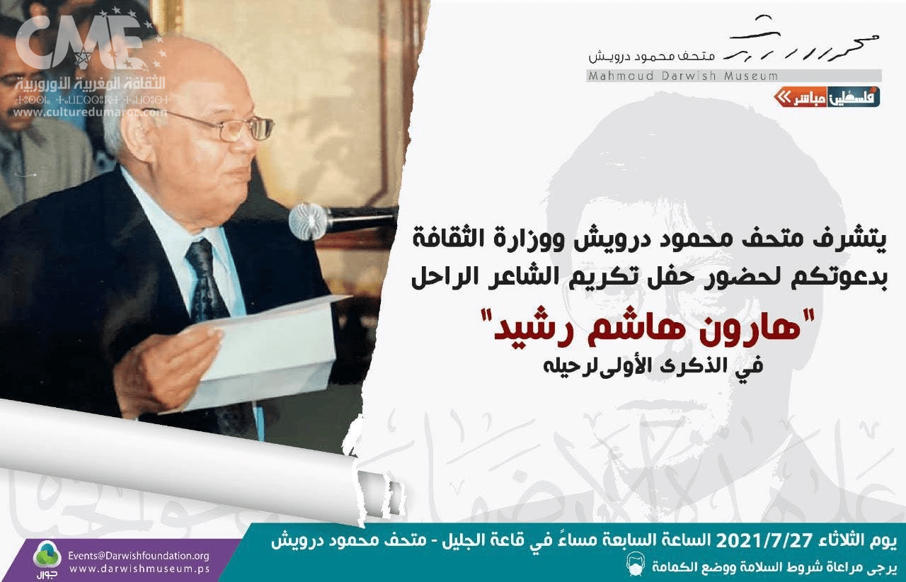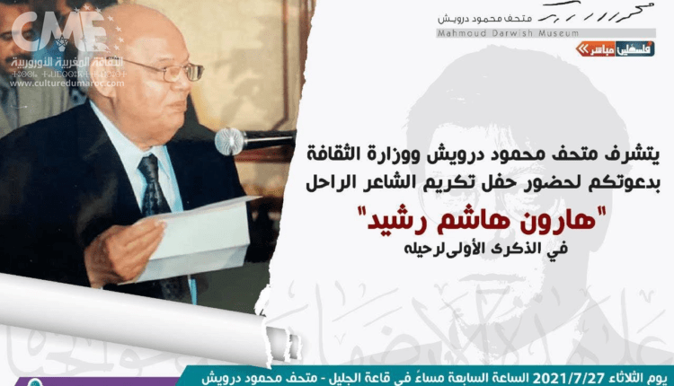 عمل متحف “محمود درويش” بمناسبة مرور عام على رحيله، في رام الله تم حفل تكريم الشاعر هارون هاشم رشيد 1927 – 2020