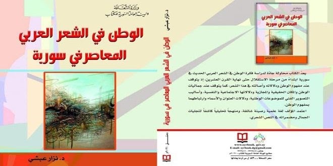 أصدر الكاتب “نزار عبشي”كتاب جديد بعنوان “الوطن في الشعر العربي المعاصر في سوريا”،الذي يتناول أهم الخصائص النفسية للشعر الوطني في سوريا.