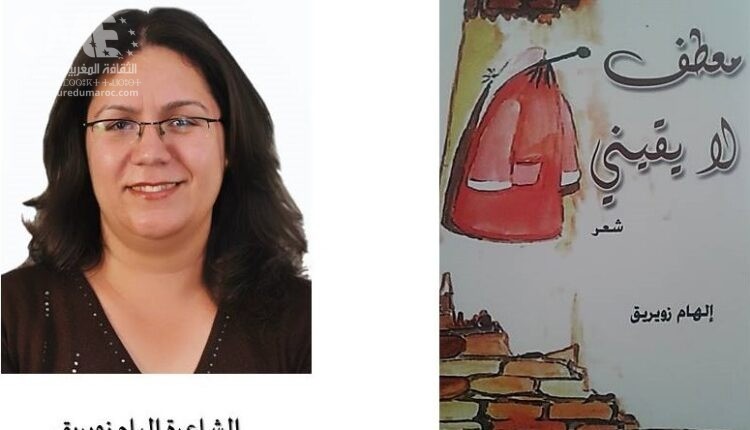 (دمية الأطلس، معطف لا يقيني، تيهان، هي القصيدة، اشتعلي يا نور نبضا، ليبيا، تتنفس حرية، أطياف حررت نفسي، أنا النبض المحال، في محرابك يا شعر، أنشودة على وتر الجيم، سأمحو آلامي، سيدة الريح، أضواء).. هم مجموع قصائد ديوان “معطف لا يقيني”، والذي يمثل خطوة رابعة تنضاف لمجموع إصدارات الشاعرة إلهام زويريق “ديوان رغم أنف أبي/2005″، “ألجأ إليك/2021″، “جسدي ريح عابرة/2021”.