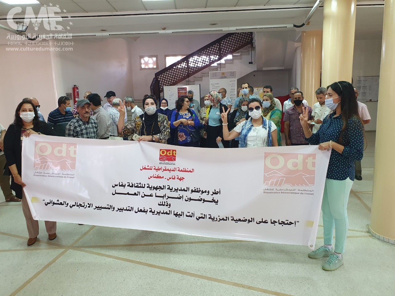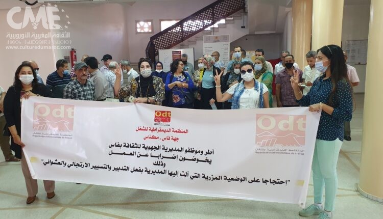 المنظمة الديمقراطية للثقافة تقرر خوض وقفات احتجاجية يومية مدتها ساعة من الساعة الح المديرة ادية عشرة صباحا إلى الثانية عشر زوالا داخل بهو المديرية الجهوية بفاس ابتداء من يوم الاثنين 27 شتنبر 2021