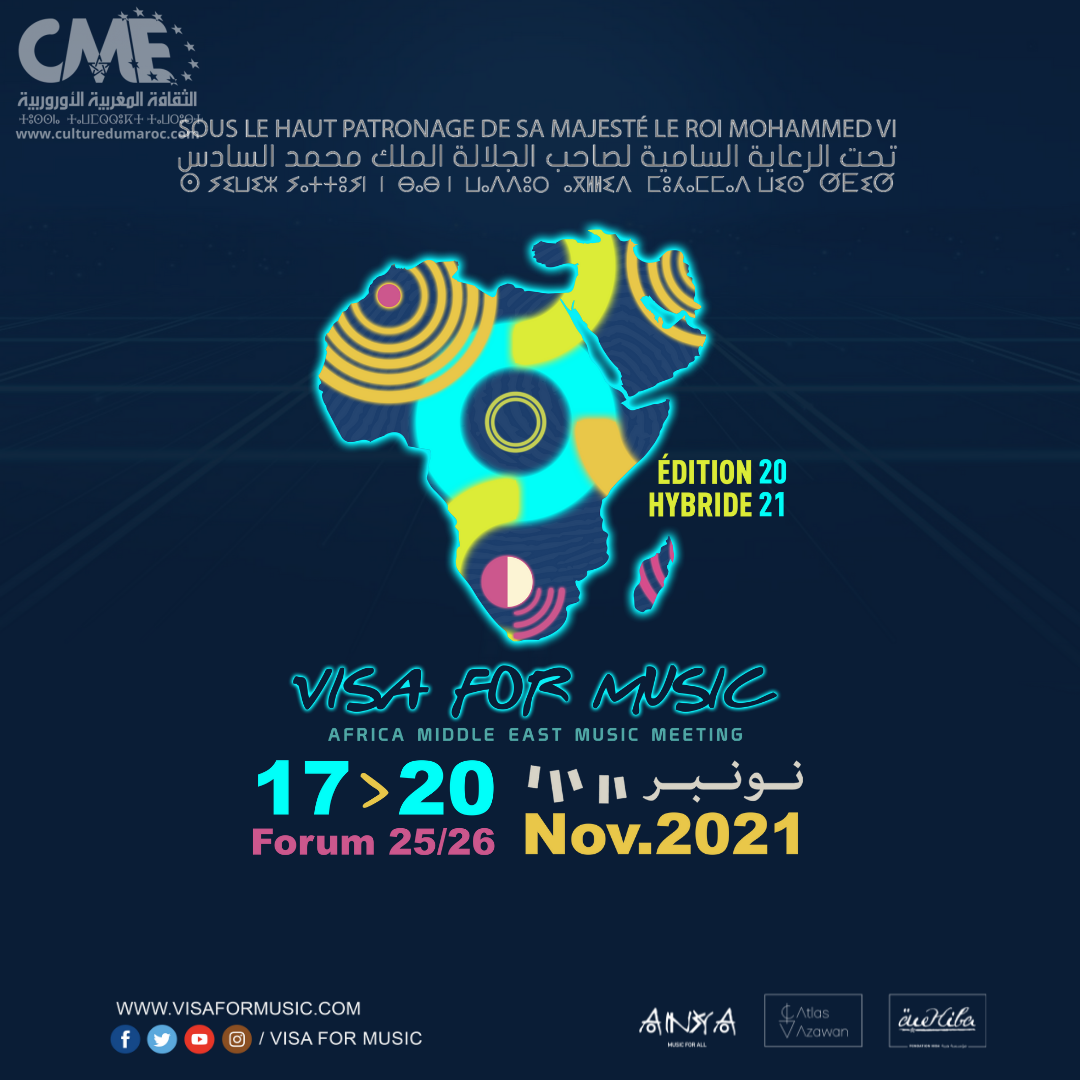 كما سينعقد ملتقى مهنيي الموسيقى في احترام تام للظروف الصحية الراهنة. ومنذ تأسيسه سنة 2014 من طرف مؤسسة آنيا الثقافية، يعدّ “فيزا فور ميوزيك” أول مهرجان وملتقى مهني يجمع الموسيقيين من أفريقيا والشرق الأوسط، ويسعى لهيكلة وتعزيز الجانب المهني لقطاع الموسيقى بالخصوص، والقطاع الثقافي بشكل عام.
