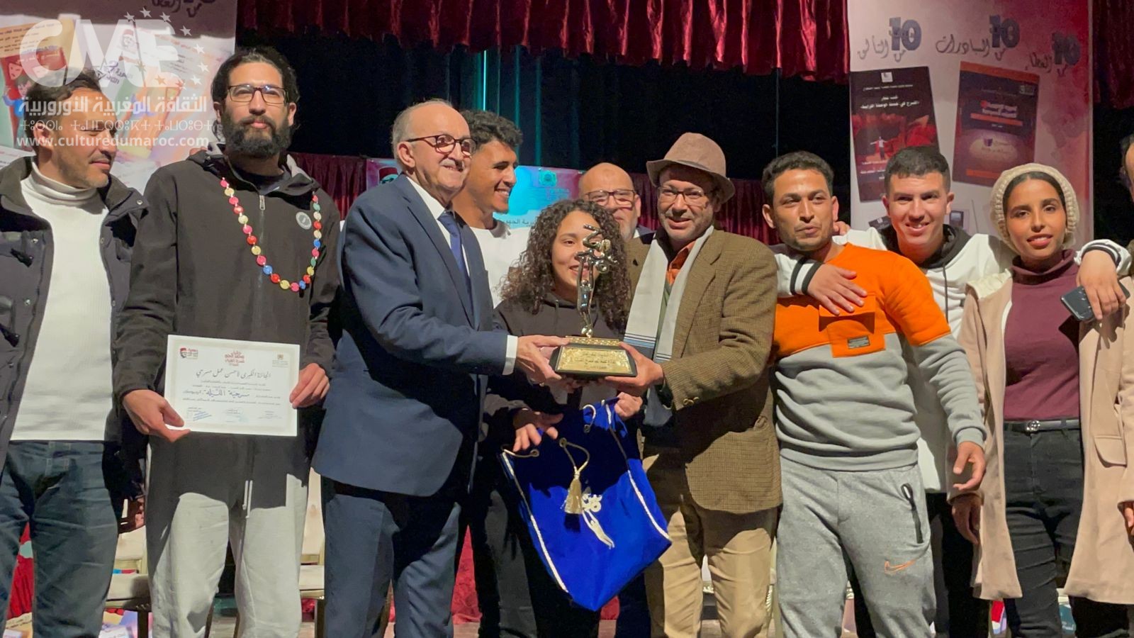 مسرحية انا الموقع اسفلة لجمعية نوميديا للفن والثقافة -الرباط- وفازت بجائزة: أحسن إخراج