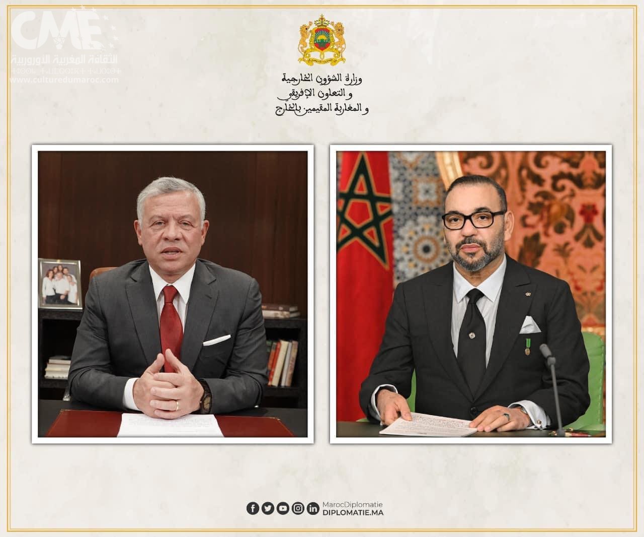 “أجرى صاحب الجلالة الملك محمد السادس، نصره الله، يومه الإثنين 18 أبريل 2022، مكالمة هاتفية مع أخيه صاحب الجلالة الهاشمية، الملك عبد الله الثاني ابن الحسين، عاهل المملكة الأردنية الهاشمية.