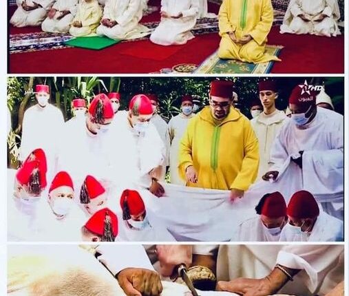 إثر ذلك، قام صاحب الجلالة بنحر أضحية العيد، اقتداء بسنة جده المصطفى صلى الله عليه وسلم، فيما قام الإمام بنحر الأضحية الثانية.
