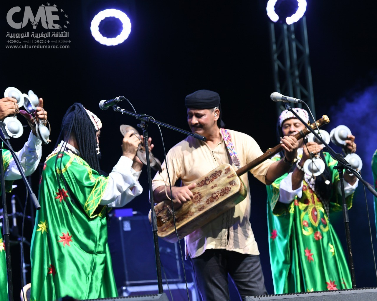 وتحولت مارينا الرباط إلى حالة كناوية عارمة، عندما جاء الدور على الفنان المعلم حميد القصري الذي ألهب حماس جمهوره الواسع والوفي، بإيقاعاته الكناوية الساحرة من خلال مجموعة من المعزوفات والمقاطع الموسيقية الخلابة، التي اهتزت لها أرواح وأجساد الحشود البشرية التي حجت إلى المهرجان. إنه الملهم حميد القصري، الذي ولد في مدينة القصر الكبير شمال المغرب، وعاش في بيئة كناوية بامتياز، وذلك بفضل زوج جدته، لذلك فمنذ سن السابعة من عمره، بدأ يتشرب ويتعلم هذا الفن من المعلمين علوان وعبد الواحد ستيتو. ولم تتأخر موهبته الفذة في الخروج إلى العلن وجذب انتباه العديد من المحترفين الذين توقعوا له مستقبلًا مشرقًا في فن تاكناويت. مع إتقانه العزف على آلة الكنبري Guembri وقوة صوته العميق، تمكن من أن يصبح واحدًا من أكثر المعلمين تقديرًا وإقبالًا، حيث جذب الآلاف من المعجبين. لقد تمكن بفضل استيعابه الكامل لهذا النمط الموسيقي الروحي، من إيجاد المزيج الصحيح بين نوع كناوة شمال المغرب وجنوبه، الذي قاده على جولات فنية ناجحة في المغرب والخارج، فضلا عن إبداعه أيضًا في الأغاني ذات الأبعاد الدينية. ومن تم، أصبح حميد القصري مرجعاً حقيقياً لموسيقى كناوة في المغرب. وهو الأمر الذي جعل لجنة الجوائز التابعة للمجلس الوطني للموسيقى تختاره لنيل جائزة الفارابي، التي كان حفل تسليمه إياها مسك ختام هذه السهرة الحاشدة، من طرف الفنان التشكيلي نعيم شماعو الذي فاجأ القصري بلوحة تشكيلية من إبداعه حول حضرته الكناوية، حيث سلمه الجائزة رفقة الإعلامية وفاء بناني رئيسة المجلس الوطني للموسيقى.