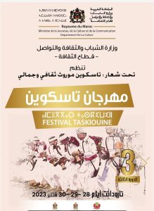 في إطار التحضير للدورة الثالثة لمهرجان تسكوين الذي ستنظمه وزارة الشباب الثقافة والتواصل – قطاع الثقافة – أيام 28-29-30 شتنبر 2023 بمدينة تارودانت، تنهي المديرية الإقليمية لقطاع الثقافة بتارودانت إلى كافة فرق رقصة تسكوين الراغبين في المشاركة في هذه الدورة، تقديم طلب المشاركة مصحوب بالملف القانوني للجمعية إضافة إلى شريط فيديو و صور و لائحة أعضاء المجموعة وذلك في أجل أقصاه 6 شتنبر 2023 قصد عرضها على لجنة انتقاء الفرق التي ستحظى بالمشاركة ضمن فعاليات هذه الدورة.