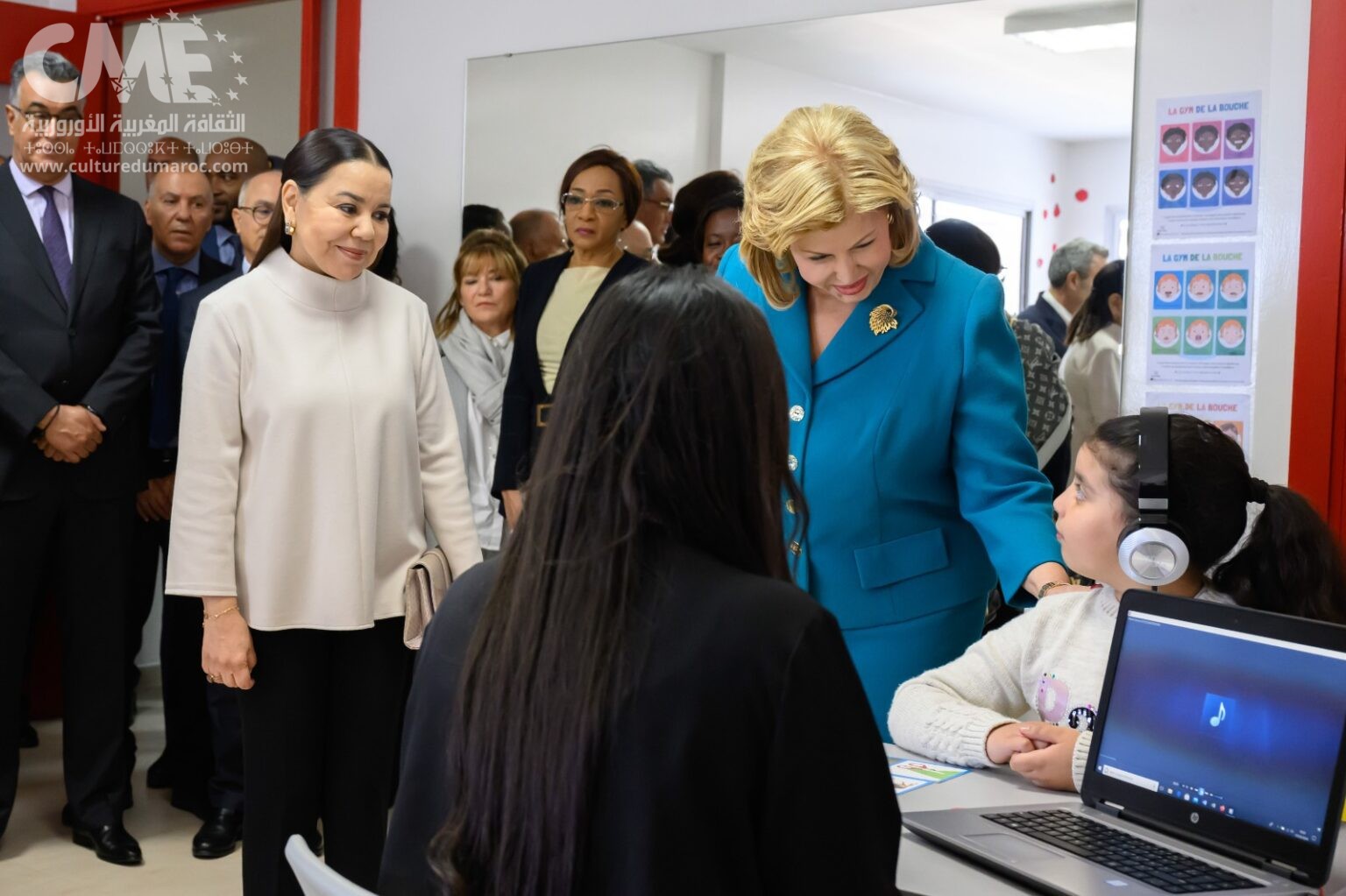 بعد ذلك، تتبعت صاحبة السمو الملكي للا أسماء والسيدة دومينيك واتارا شريطا مؤسساتيا يسلط الضوء على التحديات التي تواجه الأشخاص المصابين بالصمم، أنجزته وزارة التضامن والإدماج الاجتماعي والأسرة، وموجه إلى أسر الأطفال الصم والجمهور الواسع.