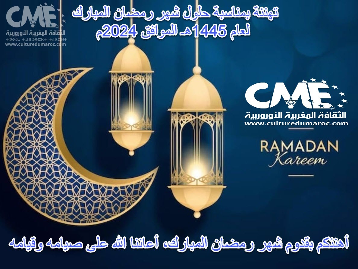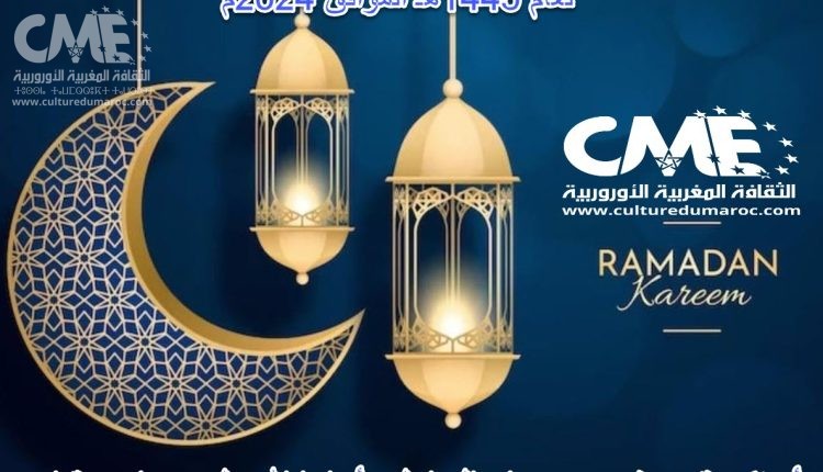 ( الثقافة المغربية الأوروبية ) بهذه المناسبة الكريمة نهنئ جميع مسلمي العالم كله بحلول هذا الشهر الكريم. شهر الرحمة ، شهر الغفران ، شهر التوبة ، شهر التقرب إلى الله.