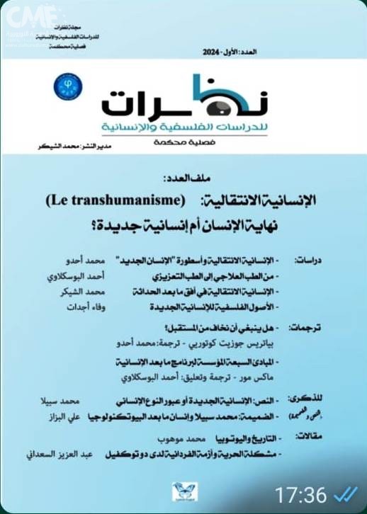 يضمّ العدد الأول من مجلة “نظرات” ملفاً علمياً دسماً حول موضوع فلسفي وبيو-تكنولوجي راهن، ما انفك يثير سجالات فكرية وفلسفية عميقة؛ وهو موضوع الإنسان بين الإنسانية الإنتقالية وما بعد الإنسانية في باب الدراسات، حيث يكتب محمد أوحدو عن “الانسانية الانتقالية وأسطورة الإنسان الجديد”، أما أحمد البوسكلاوي فيناقش موضوع “من الطب العلاجي إلى الطب التعزيزي”، في حين يكتب مدير المجلة محمد الشيكر عن “الأنسانية الانتقالية في أفق ما بعد الحداثة”، بينما تكتب وفاء أجدات عن “الاصول الفلسفية للإنسانية الجديدة”. كما يحتوي العدد على ترجمات ومقالات في التراث والديموقراطية. ففي باب “للذكرى” مثلا نجد نصا لمحمد سبيلا بعنوان “الإنسانية الجديدة أو عبور النوع الإنساني”.