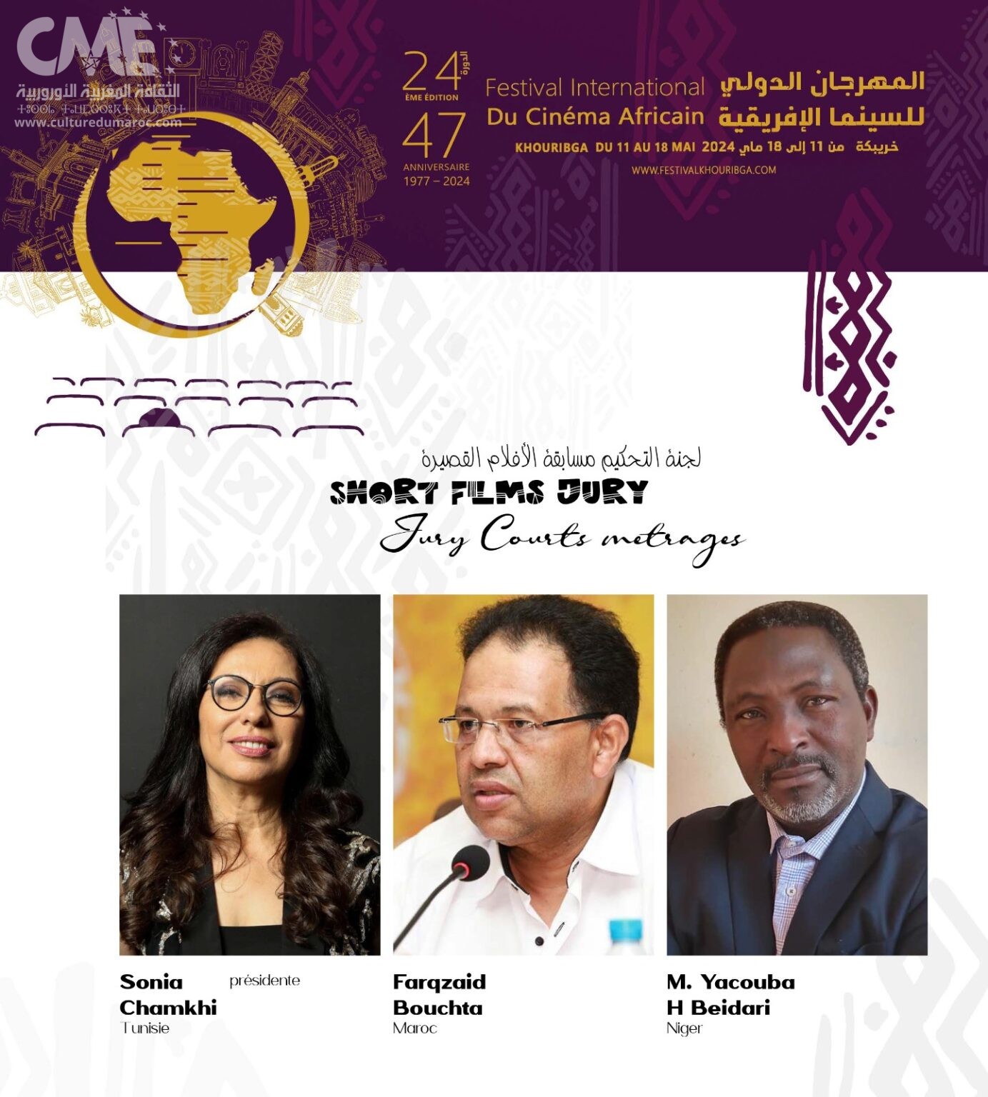 أعلنت مؤسسة المهرجان الدولي للسينما الإفريقية بمدينة خريبكة، عن لجنتي تحكيم مسابقتي الأفلام الطويلة، والأفلام القصيرة، للدورة ال 24 التي ستقام من 11 الى 18 ماي 2024، تحت الرعاية السامية لصاحب الجلالة الملك محمد السادس نصره الله.