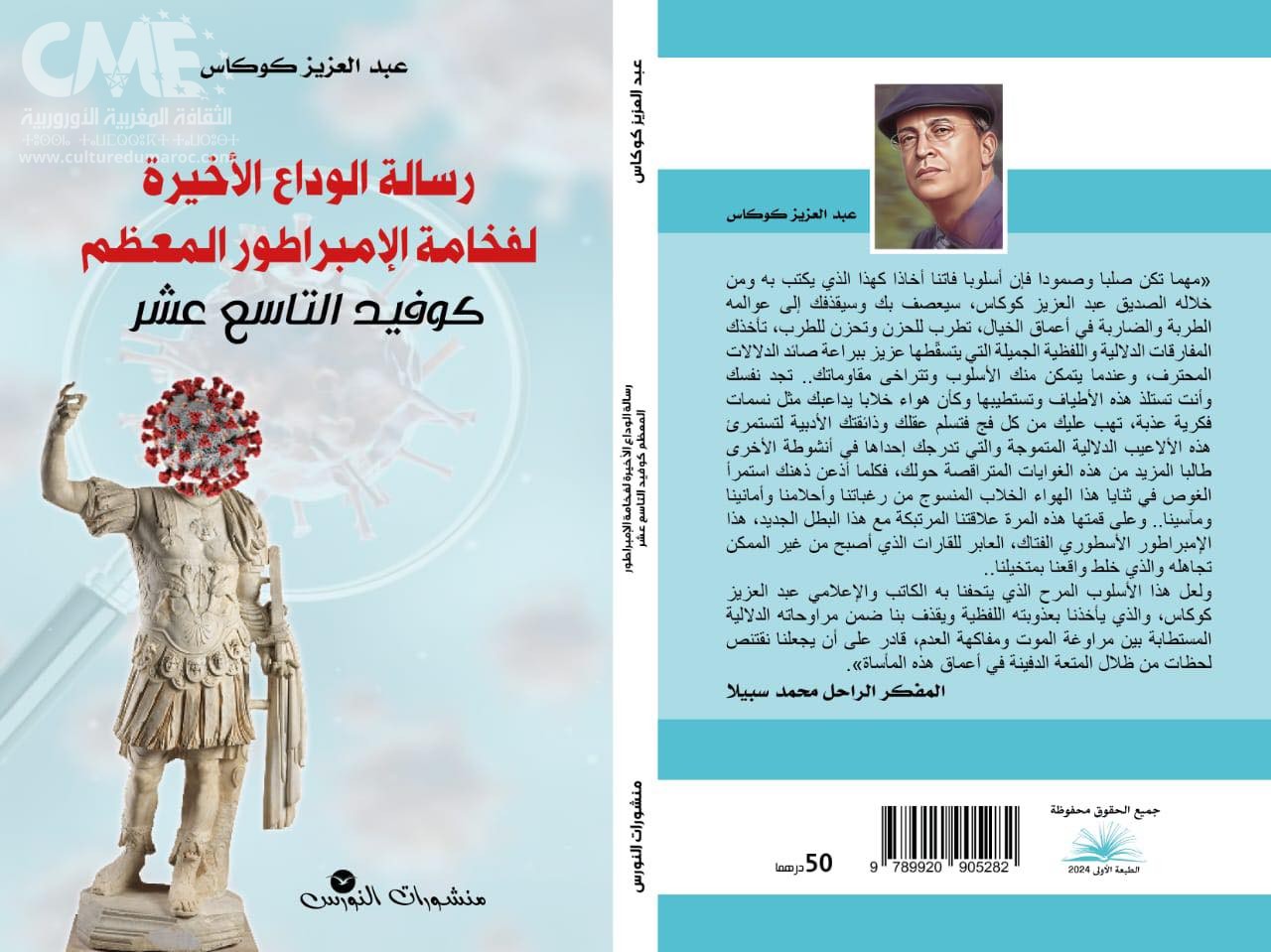 يضحكنا حيث يجب أن نبكي، يسرق منا قهقهاتنا حين نحس بأن الألم يسكننا والموت يهددنا، ثم يعود ليبكينا حين يوقظنا على حقائق المآسي التي خلفها كوفيد 19 فينا، حتى أننا بين الحزن والفرح لا ندري ما الذي أجدر بنا لمواساة حالتنا، هكذا يستمر الكاتب والإعلامي عبد العزيز كوكاس في تتبع تلك التفاصيل الصغيرة مثل خيط وشك مما خلفه فيروس كورونا المتحور في عمق ذواتنا، كتاب “رسالة الوداع الأخيرة لفخامة الإمبراطور المعظم كوفيد التاسع عشر”، ليس من الكتب التي تقرأها وأنت على وشك النوم، إذ أنه يخلق في طريقك كوابيس لا ترى بالعين المجردة، وليس من الكتب التي تجعلنا ننام على وسادة كسولة..