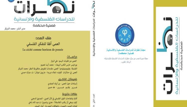 في إطار عمله على تعزيز حضور الفكر الفلسفي ببلادنا، يواصل مركز نظرات للدراسات الفلسفية والإنسانية من خلال مجلته المحكّمة “نظرات” مشروعه الفلسفي الهادف إلى مساءلة مناحٍ غير مطروقة من الراهن الإنساني. فعبر العدد الثاني من المجلة، تحرص هيئة التحرير على مساءلة موضوعة العمى من خلال دراسات ومقالات جادة لكل من علي بزاز، محمد أيت لعميم، محمد الشيكر ومبارك حسني. وبالإضافة إلى هذا الملف الفلسفي الدسم، تضمن العدد أيضا مقالات عميقة ومتميزة تشتغل بدورها على قضايا لا تقل راهنية، من بينها صداقات الكتاب من خلال “حيوات متقاطعة”.