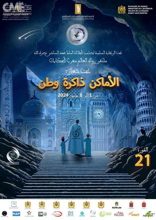 تحت الرعاية السامية لصاحب الجلالة الملك محمد السادس نصره الله وايده، تعلن الأكاديمية الدولية للتراث الثقافي اللامادي ( جمعية لقاءات للتربية والثقافات سابقا) عن تنظيم الدورة 21 لملتقى رواة العالم ” مغرب الحكايات ” بشراكة مع وزارة الشباب والثقافة والتواصل – وولاية جهة الرباط سلا القنيطرة .