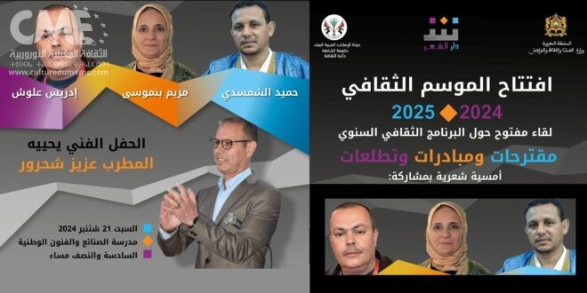 تنظم دار الشعر بتطوان حفل افتتاح الموسم الشعري والثقافي، يوم السبت 21 شتنبر الجاري، في فضاء مدرسة الصنائع والفنون الوطنية، ابتداء من الساعة السادسة والنصف مساء.