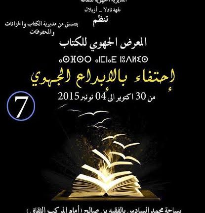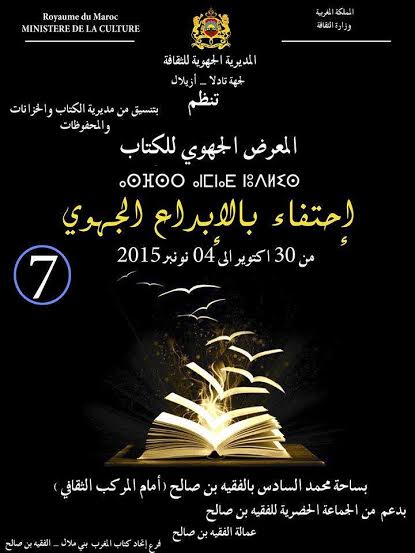 تنظم المديرية الجهوية للثقافة بجهة تادلا-أزيلال، وبتنسيق ودعم من مديرية الكتاب والخزانات والمحفوظات، وبدعم من الجماعة الحضرية للفقيه بن صالح، وعمالة الفقيه بن صالح، وبتنسيق مع فرع اتحاد كتاب المغرب ببني ملال–الفقيه بن الصالح تنظم، احتفاء بالإبداع الجهوي، الدورة السابعة للمعرض الجهوي للكتاب، وذلك من 30 أكتوبر إلى 4 نونبر2015، بساحة محمد السادس، أمام المركب الثقافي بالفقيه بن صالح.