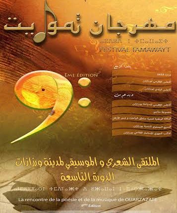 تعلن جمعية أنفاس ورزازات للبحث الفني والثقافي عن تنظيم الدورة التاسعة لمهرجان تموايت/ الملتقى الشعري والموسيقي لمدينة ورزازات ، في الفترة الممتدة ما بين 5 و8 نونبر 2015 بقصرالمؤتمرات بمدينة ورزازات.