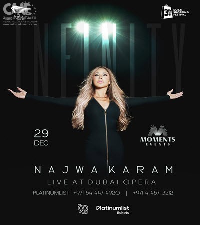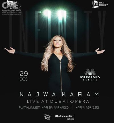 وقد تم الإعلان عن حفل نجوى كرم من خلال “بوستر” مميز، نُشر عبر حساب “مومنتس إيفنتس” على منصات التواصل الاجتماعي، وجاء فيه: “شمس الأغنية اللبنانية والعربية نجوى كرم تشرق على مسرح دبي أوبرا في لقاء استثنائي مع جمهورها يوم 29 ديسمبر. كونوا على الموعد لليلة من الفرح، الإبداع، والموسيقى الخالدة”.