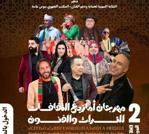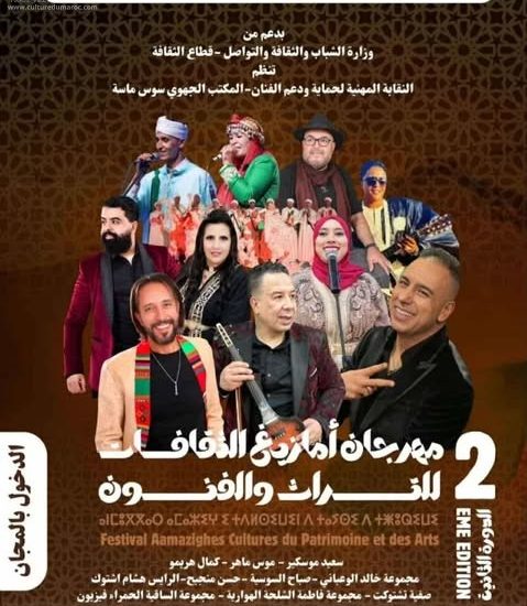 ينظم المكتب الجهوي سوس ماسة للنقابة المهنية لحماية ودعم الفنان، بدعم من وزارة الشباب والثقافة والاتصال – قطاع الثقافة، مهرجان “أمازيغ الثقافات للتراث والفنون” في دورته الثانية.