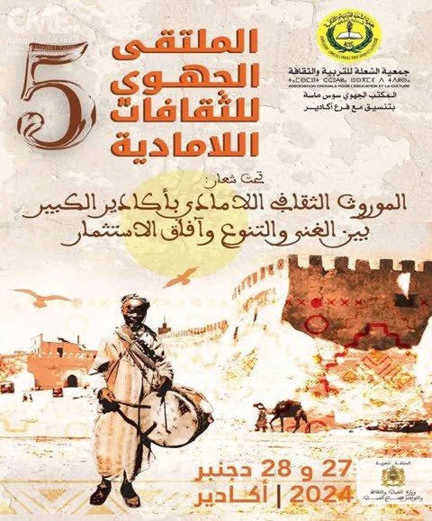 في هذا الاطار، ونظرا للأهمية البالغة التي يكتسيها هذا الموضوع في تنمية المجتمع من مختلف الأصعدة ، و تعزيزا للرصيد الذي راكمته جمعية الشعلة للتربية و الثقافة في مقاربة السؤال الثقافي و الاشتغال عليه، و استكمالا لمشروع توثيق التراث اللامادي بالجنوب المغربي، و الذي بدأ شوطه الأول بتنظيم الدورة الأولى للملتقى الجهوي للثقافات اللامادية بمدينة زاكورة ، حيت تم الاشتغال على تراث واحة درعة تحت مسمى ” التراث اللامادي بواحة درعة … من الاحتفالية الى الاستثمار “، ليتم استكمال المشروع بتنظيم الدورة الثانية بمركز انزي اقليم تيزنيت تحت مسمى : ” جوانب من التراث اللامادي بمجال أدرار ” ثم دورة ثالثة بمدينة أولاد تايمة تحت محور : ” قبيلة هوارة ..من سؤال الذاكرة الى رهان التثمين ” واخرها دورة رابعة بمدينة طاطا تحت محور : ” التراث اللامادي بإقليم طاطا ..الغنى و التنوع و الحاجة الى التثمين “، ينظم المكتب الجهوي بتنسيق مع الفرع المحلي للجمعية بمدينة أكادير بدعم من المديرية الجهوية لقطاع الشباب بسوس ماسة الدورة الخامسة أيام 27 و28 دجنبر 2024 تحت شعار: ” الموروث الثقافي اللامادي بأكادير الكبير.. بين الغنى والتنوع، وافاق الاستثمار” بفضاءات قاعة ابراهيم الراضي بالقصر البلدي بأكادير و قاعة العروض بالمديرية الجهوية لقطاع الشباب سوس ماسة .