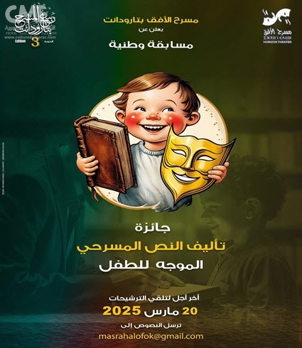 في إطار تعزيز الثقافة المسرحية ودورها في تنمية الخيال والإبداع لدى الأطفال، يعلن مسرح الأفق بتارودانت عن إطلاق مسابقة وطنية لجائزة النص المسرحي الموجه للطفل، بهدف دعم وتشجيع الكتّاب على إنتاج نصوص إبداعية تسهم في إثراء أدب الطفل، وفتح آفاق جديدة أمام الأجيال الناشئة لفهم الذات والتفاعل مع المجتمع من خلال المسرح.