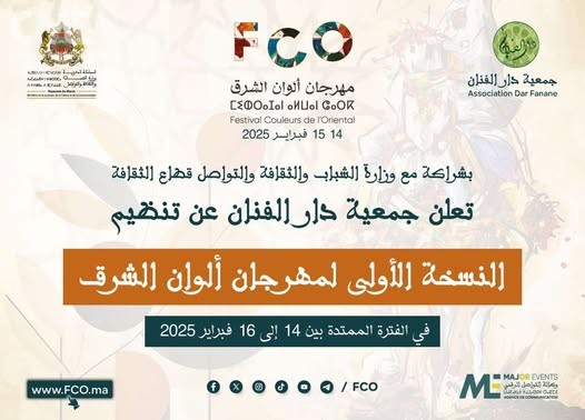 انسجاما مع أهداف الجمعية وتوجهات وزارة الثقافة الرامية إلى اعتبار الفن والثقافة رافدين أساسيين في منظومة الحياة العامة، وتفعيلا لاتفاقية الشراكة المبرمة مع وزارة الشباب والثقافة والتواصل قطاع الثقافة، وتحت شعار الفن العمومي جسر للتنمية، تعلن جمعية دار الفنان، عن تنظيم النسخة الأولى لمهرجان ألوان الشرق، في الفترة الممتدة بين 14 إلى 16 فبراير 2025، وذلك وفق برنامج إبداعي وثقافي متنوع، كما تأتي هذه المبادرة الثقافية والإبداعية إلى خلق أجواء ثقافية من خلال الانفتاح على مجموعة من الألوان الفنية محليا وجهويا ووطنيا، والتي ستساهم في خلق دينامية في هذا المجال بالمدينة وتنشيط الساكنة وإشراك مجموعة من الفنانين الشباب، وكذا الاحتفاء بالموروث الثقافي اللامادي الخاص بجهة الشرق.