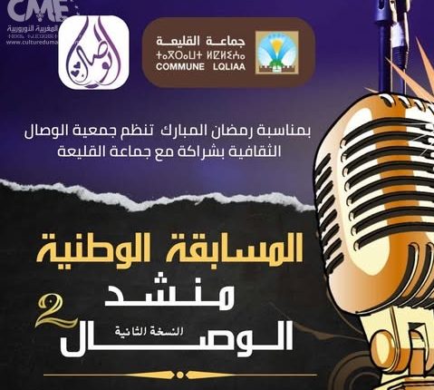 بشراكة مع جماعة القليعة ضمن الأنشطة الموازية لمهرجان الوصال الوطني للمديح والسماع. المسابقة جماعية وفردية.