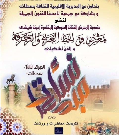 احتفاءً باليوم العالمي للمرأة، وتحت شعار “نساء مبدعات”، تنظم الفنانة الحرفية أمينة شيشي، بالتعاون مع المديرية الإقليمية للثقافة بسطات، وبشراكة مع جمعية تامسنا للفنون الجميلة، معرضًا نسائيًا للفن والخط العربي والزخرفة، بمشاركة نخبة من الفنانات المغربيات المبدعات، وذلك في الفترة الممتدة من 22 إلى 30 فبراير 2025.