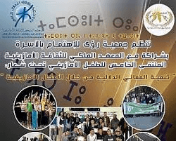 في إطار أنشطتها الثقافية الهادفة التي تعنى بالطفل و الأسرة، و بشراكة مع المعهد الملكي للثقافة الامازيغية تنظم جمعية رؤى للاهتمام بالأسرة ملتقاها الثقافي السنوي الخامس للطفل الأمازيغي في الفترة الممتدة من 4 إلى 13 دجنبر 2015 و الذي يحمل هذه السنة شعار ” تنمية المعاني الدلالية من خلال الأمثال الأمازيغية” .
