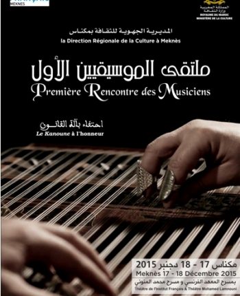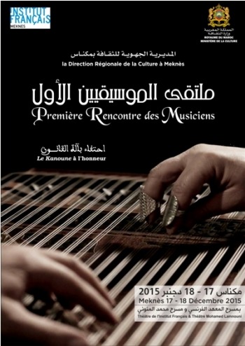 تنظم المديرية الجهوية للثقافة بمكناس، بتعاون مع المعهد الفرنسي، الملتقى الأول للموسيقين، وذلك يومي 17 و18 دجنبر 2015. وهي تظاهرة تحتفي بالآلات الموسيقية في تعددها وتنوعها وثرائها كواسطة للتواصل والاستمتاع توحد بين الأجناس والشعوب والمجتمعات.