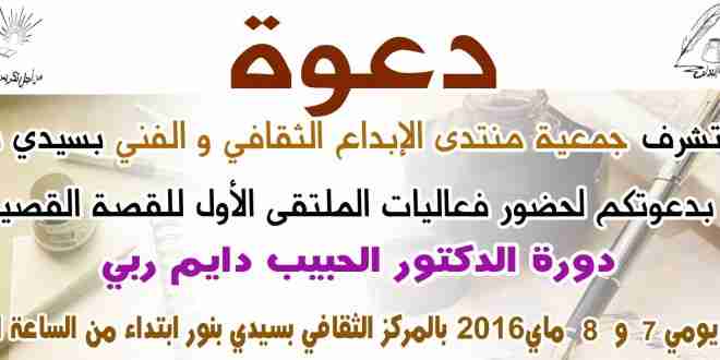بسيدي بنور: دعوة لحضور منتدى الابداع الثقافي – الملتقى الأول للقصة القصيرة دورة الدكتور الحبيب الدايم ربي: يوم07 و 08 ماي 2016 بالمركز الثقافي