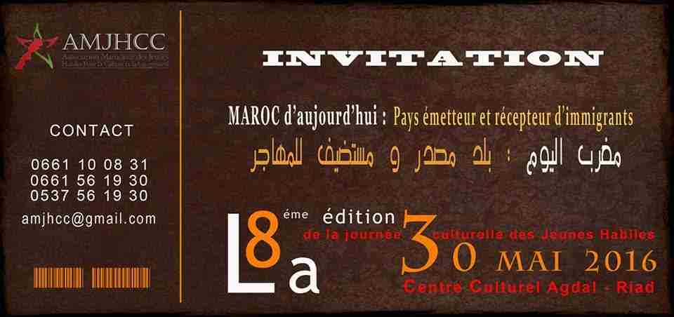 تحت شعار ” مغرب اليوم: بلد مصدر ومستضيف للمهاجر” تنظم جمعية الشباب الماهر للثقافة و المواطنة الدورة الثامنة لليوم الثقافي الذي دأبت على تنظيمه سنويا. وسوف يحتضن المركز الثقافي بأكدال وقائع هذه التظاهرة يوم 30 مايو 2016 بحضور صفوة من ممثلي المجتمع المدني الفاعل وكذا بعض السفراء والتمثيليات الدبلوماسية بالمملكة المغربية. ومن المنتظر أن يعرف هذا اليوم الثقافي حضورا مكثفا لمنابر الإعلام الوطنية والدولية على خلفية نجاح الدورات السابقة. وفي حديث لوسائل الإعلام أكد السيد عبد الله محمد منظري رئيس جمعية الشباب الماهر للثقافة و المواطنة أن المجتمع المدني أصبح أكثر مسؤولية إزاء القضايا الوطنية بٱانخراطه في كل المشاريع والأوراش الكبرى التي تصب في الصالح العام”