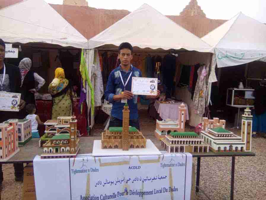 عبد الرحمان مزيلي ، شاب طموح من حي إمزيلن بومالن دادس ، صانع تقليدي ” Architecte ” متميز إستطاع أن يبصم بصمته على المستوى المحلي بمهرجان تــملســا ببومالن دادس فس نسخته السابعة من خلال مشاركته في رواق الصناع التقليديين باسم جمعية تغرماتين ن دادس