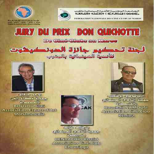 وبالنسبة للجنة تحكيم جائزة “دون كيشوط” التي تمنحها الجامعة الوطنية للأندية السينمائية بالمغرب، فتتكون من ثلاثة أعضاء يمثلون ثلاث أندية سينمائية مغربية وهم الجاموسي بوشعيب (النادي السينمائي بالقنيطرة) و بوجو جيلالي (النادي السينمائي بالمحمدية) وبنرشيد خالد (جمعية النادي السينمائي بخريبكة).