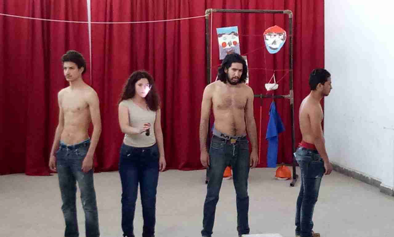 وداخل القاعة المسرحية يتم تكسير القواعد الكلاسيكية في اللعب، يتم الانطلاق من موقع الجمهور، أما الجمهور فيشاهد العرض من أعلى خشبة العرض، ليتم تبادل الادوار بعد ذلك في لوحة فنية متناسقة ومنسجمة تحضر فيها اللغة العربية الفصيحة في أجمل وأنقى مظاهرها، وحواراتها الراقية ،ومونولوجها الثائر الهائج الباحث عن ضوء للنفق المسدود.