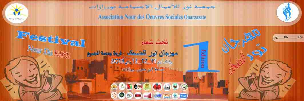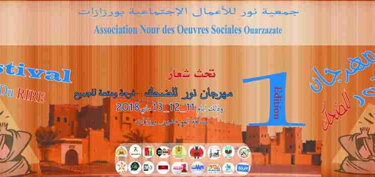 بدعم من المديرية الاقليمية لوزارة الثقافة و الاتصال بورزازات و المجلس الجماعي لمدينة ورزازات ، المديرية الاقليمية لوزارة الشباب و الرياضة ثم المجلس الاقليمي لورزازات ستنظم جمعية نور للاعمال الاجتماعية المهرجان الوطني نور للضحك في دورته الأولى بمدينة ورزازات خلال يومين 12و13 ماي 2018 وذلك تحت شعار “مهرجان نور للضحك …فرجة و متعة للجميع ”