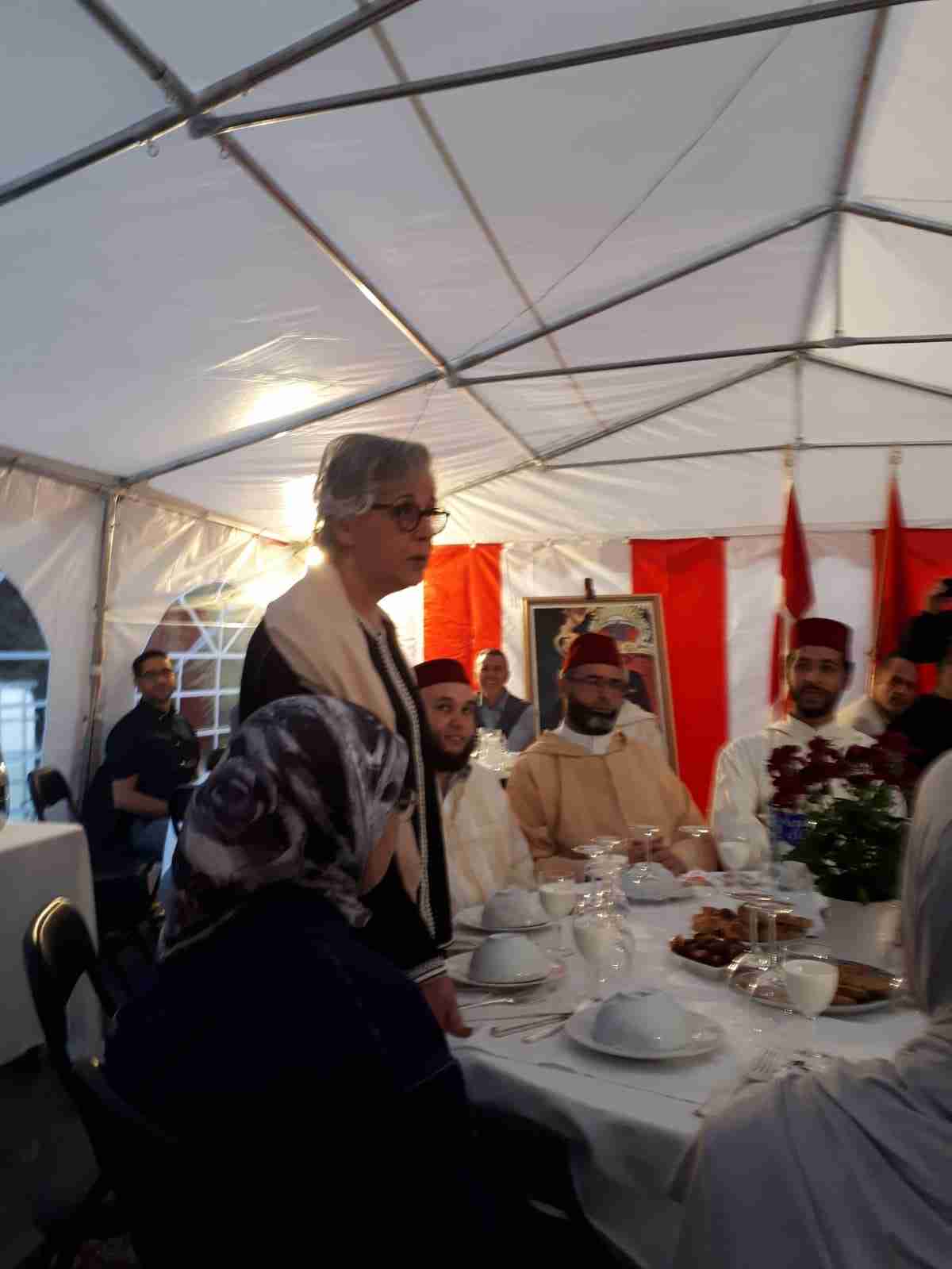 بدعوة كريمة من سفيرة صاحب الجلالة بمملكة الدنمارك الاستادة خديجة الرويسي وبمقر إقامتها اقيم حفل إفطار جماعي متميز وفي جو روحي على شرف بعثةالائمة الموفدين من وزارة الاوقاف والشؤون الإسلامية ورؤساء الجمعيات وفاعلين من أبناء الجالية المغربية إلى جانب الطاقم الدبلوماسي بالدنمارك .استهل اللقاء بكلمة سعادة السفيرة حيث رحبت بالحضور الكريم بكلمات جد راقية ومعبرة تركت الأثر الإيجابي في نفوس الحضور ولم تغفل في كلمتها العناية الملكية السامية لرعاياه في الخارج وظرورة الاعتناء بمصالحهم وتحقيق انتضاراتهم والاستماع إلى تطلعاتهم كما أوصى بدالك عاهل البلاد في كل خطبه السامية وتوجيهاته إلى الحكومة والقطاعات الوصية .