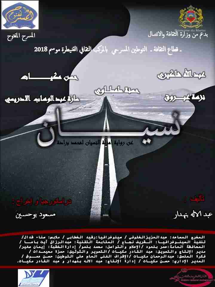 يحتضن المركز الثقافي القنيطرة يوم الاثنين 9 يوليوز الحالي في السابعة مساء تقديم العرض الأول لمسرحية “نسيان” لفرقة المسرح المفتوح بدعم من وزارة الثقافة والاتصال -قطاع الثقافة- في إطار التوطين المسرحي موسم 2018. من تأليف عبد الإله بنهدار وإخراج الدكتور مسعود بوحسين وتشخيص : حسناء طمطاوي ، حسن مكيات ، عبد الله شكيري، نزهة عبروق و سارة عبد