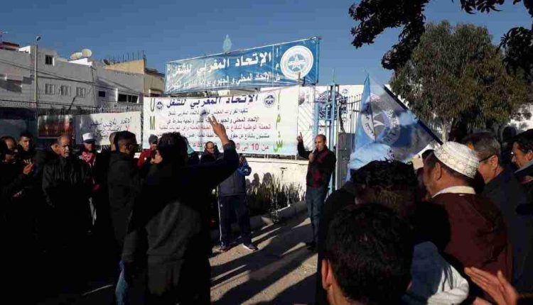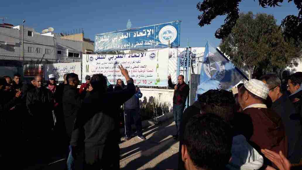 تفعيلا لقرار المجلس الوطني للاتحاد المغربي للشغل خاضت الطبقاحتجارة العاملة بقيادة الاتحاد الجهوي لأكادير مساء امس الخميس 17يناير 2019 وقفة احتجاجية أمام مقر UMT باكادير ، احتجاجا على تجاهل الحكومة لمطالب الطبقة العاملة العادلة والمشروعة، وفي مقدمتها الزيادة العامة في الأجور بالقطاع الخاص والوظيفة العمومية وكل المؤسسات العمومية، مع تعميمها على سائر الفئات، والتخفيض الضريبي، والرفع من الحد الأدنى للأجر، وتنفيذ ما تبقى من اتفاق 26 أبريل 2011، وإيجاد حلول منصفة للمشاكل الراهنة ،وضد الهجوم الشرس الذي تنهجه كل من السلطة و الباطرونا على الحق في الانتماء و حق الاضراب و هو أمر يدبر في الخفاء لضرب مكتسبات الطبقة العاملة الوقفة حضرها ممثلون عن جميع القطاعات المنضوية تحت لواء الاتحاد المغربي للشغل وجهوا رسائل واضحة للمسؤولين محذرين إياهم من مغبة الاستمرار في سياساتهم التحقيرية للعمال و العمل النقابي واستوعدوهم بعودة قريبة و بزخم بشري أكبر عددا و عدة .
