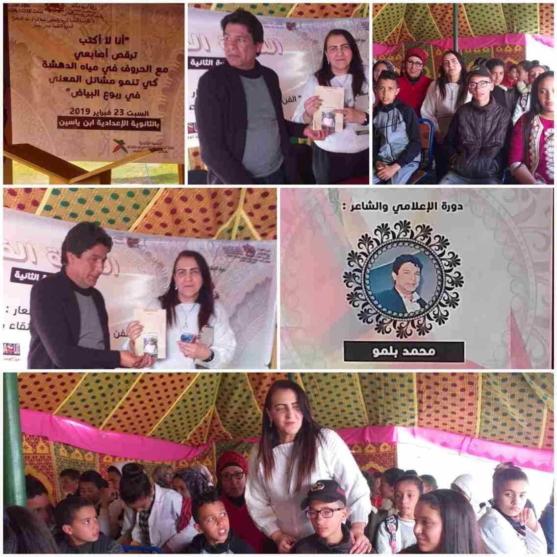 في جو استثنائي حميمي جمع التلاميذ والأطر التربوية والكتاب والفنانين، اِحتضنت الثانوية الإعدادية “اِبن ياسين” التابعة للمديرية الإقليمية للتربية الوطنية والتكوين المهني بسيدي سليمان، يوم السبت 2019/02/23، فعاليات الدورة الثانية لتظاهرة “اللّامة الفنية”، من تنظيم فرقة مسرح سيدي يحيى الغرب، “دورة الشاعر والإعلامي محمد بلمو”، تحت شعار: “الفن دعامة أساسية للارتقاء بمدرسة المواطنة”، وذلك في إطار تنزيل مضامين برنامج الأنشطة موضوع اتفاقية شراكة مع المديرية الإقليمية، وبتنسيق مع شبكة المقاهي الثقافية بالمغرب، وبدعم من وزارة الثقافة والاتصال/قطاع الثقافة.