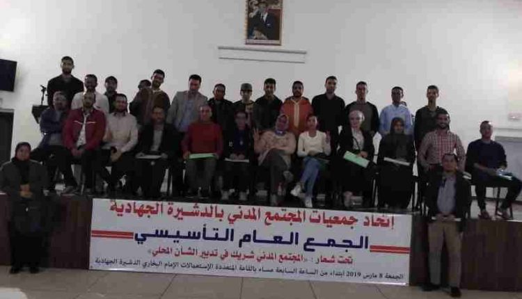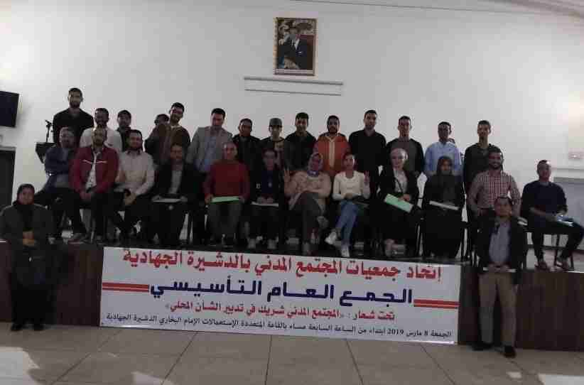 تحت شعار : ‘‘المجتمع المدني شريك في تدبير الشأن المحلي ‘‘ ,انعقد يوم 08 مارس 2019 الجمع العام التأسيسي لاتحاد جمعيات المجتمع المدني بالدشيرة الجهادية اقليم انزكان ايت ملول بحضور أكثر من 42 جمعية ، وقد جاء هذا التأسيس بعد سلسلة من اللقاءات والمشاورات التي باشرتها اللجنة التحضيرية المكونة من ممثلي جمعيات مدينة الدشيرة قصد تأسيس نسق جمعوي موحد في إطار اتحاد يضم جمعيات المدينة لتطوير العمل الجمعوي بمدينة الدشيرة الجهادية من باب تجاوز واقع تشتت الجهود واستنزاف الطاقات البشرية الجمعوية بفعل غياب إطار جمعوي جامع لكل الطاقات والإمكانيات البشرية والمادية ، ويسعى هذا المولود الجمعوي الجديد على تدعيم القدرات الذاتية وتطوير المهارات للجمعيات المنخرطة عبر تحقيق الأهداف المتوخاة من مبادرة التشبيك على مستوى التكوين والتأهيل، وإنجاز دراسات المشاريع وتفعيلها، وإبرام اتفاقيات الشراكة التنموية، ثم اعتماد مقاربات النوع الاجتماعي، والاهتمام بالموروث الثقافي الامازيغي، والعمل على إعداد البرامج التنموية والتضامنية والاجتماعية والإنسانية.بالاظافة الى الوظيفة المستقبلية لاتحاد الجمعيات التي تكمن في تكريس وجوده كشريك حقيقي وكقوة مدنية داعمة وضاغطة من أجل المساهمة في بلورة سياسات التنمية المحلية والجهوية.